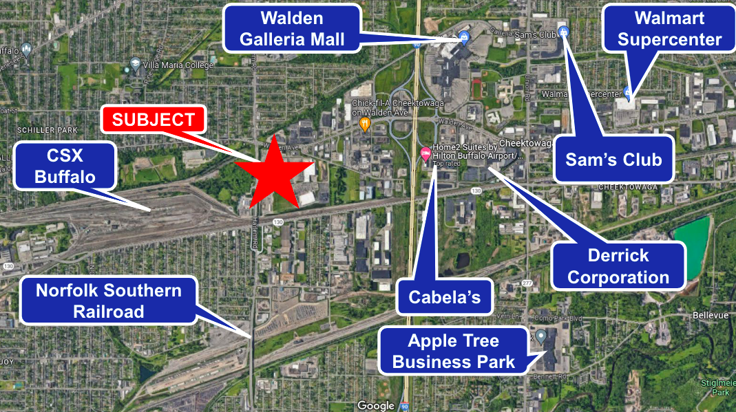 Thruway Plaza is a 217,279 square foot grocery anchored retail center located in Cheektowaga, NY. Cheektowaga is a town in Erie County, New York. Thruway Plaza includes national retail sellers including Tops Market and Value City Furniture. Located at the corner of Harlem Road and Walden Avenue, Thruway Plaza is located in a dominant retail corridor at one of the busiest intersections in the area. The center offers unattached visibility and access, with a signalized entrance along Walden Avenue, and 4 curb cuts along Thruway Plaza drive, which is an access road directly off Harlem Road.
